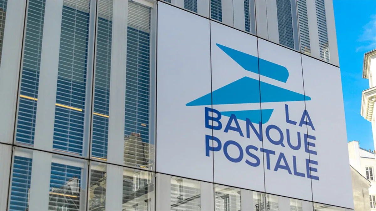 Façade d'un bâtiment administratif affichant le logo de La Banque Postale sur une surface vitrée